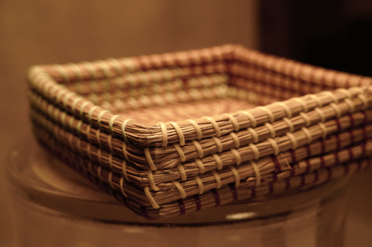 Cesta bandeja Cuadrada de Raíz de Jacinto estilo boho 20x20x6cm