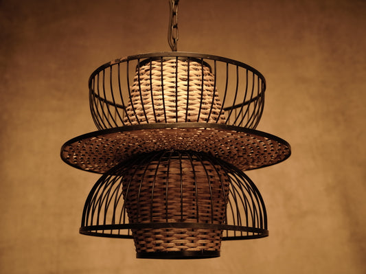 Lámpara de Techo Artesanal de Ratán y Acero - Estilo Vintage
