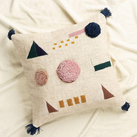 Cojín Boho Cuadrado en Algodón con Bordados en Relieve