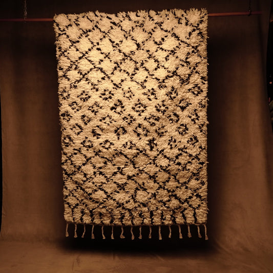 Alfombra de Lana Artesanal con Estilo Étnico en Blanco y Negro