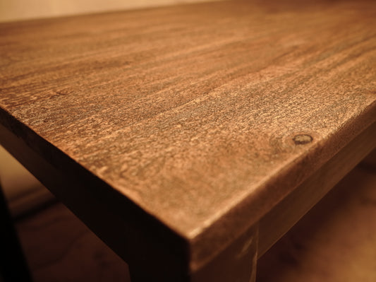 Mesa de comedor de madera de mango y metal estilo industrial