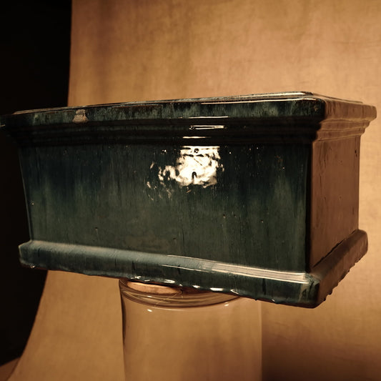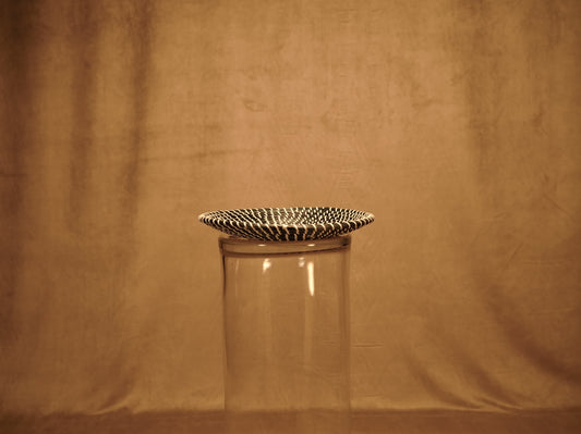 Plato decorativo azul tribal hecho a mano en pradera marina