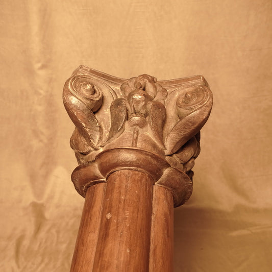 Cornisa y columnas de madera tallada con baranda de hierro forjado, artesanía de Indonesia