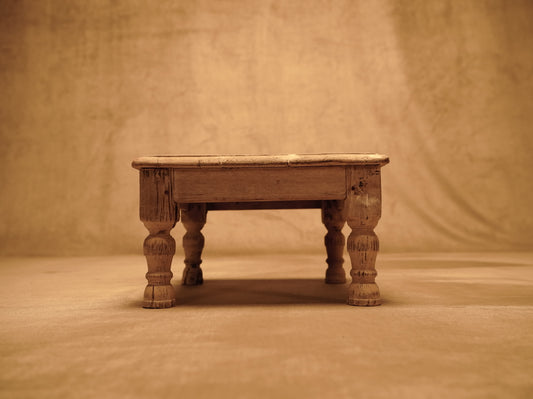 Mesa auxiliar baja mandala de madera blanca estilo vintage