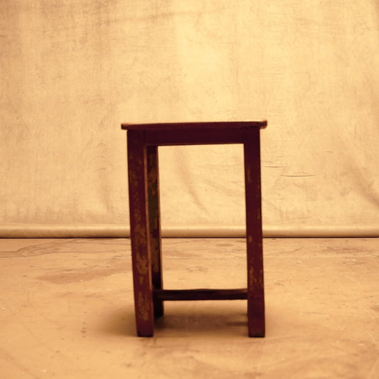 Mesita taburete rojo de madera antigua roja - Estilo rústico vintage