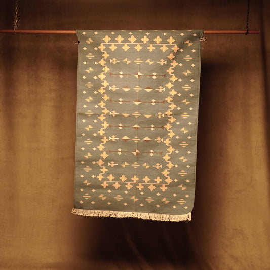 Alfombra Artesanal Kilim de Lana Naranja con Flecos