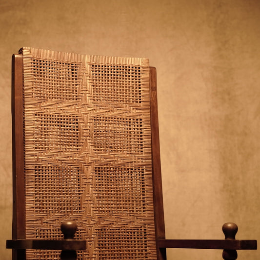 Silla antigua de madera natural con asiento trenzado