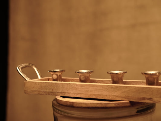 Tischkandelaber im Japandi-Stil mit vier Kerzen