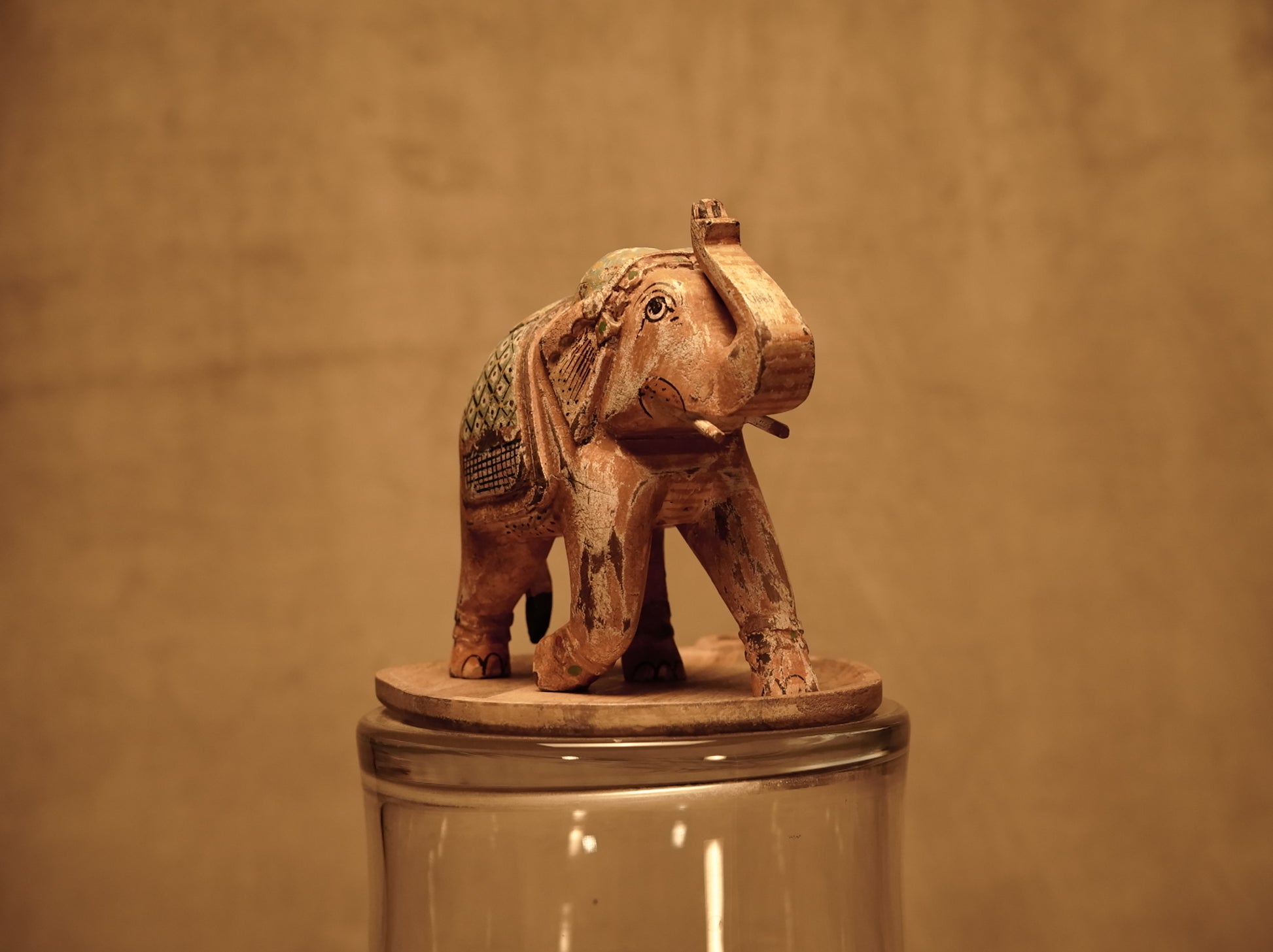 Diese exquisite dekorative Elefantenfigur, handgefertigt aus Holz, erinnert an die Majestät der Mogulkunst Indiens. Es stellt einen jagenden Elefanten oder „Shikar“ dar, der in jedem sorgfältig geschnitzten Detail die Essenz von Adel und Tapferkeit einfängt. Mit einer gealterten Patina, die seine Authentizität unterstreicht, ist dieses Stück mehr als nur Dekoration; Es ist ein Beweis für das kulturelle Erbe und die Handwerkskunst, die über Generationen weitergegeben wurde. Perfekt für alle, die ihrem Zuhause einen exotischen Touch voller Geschichte verleihen möchten.