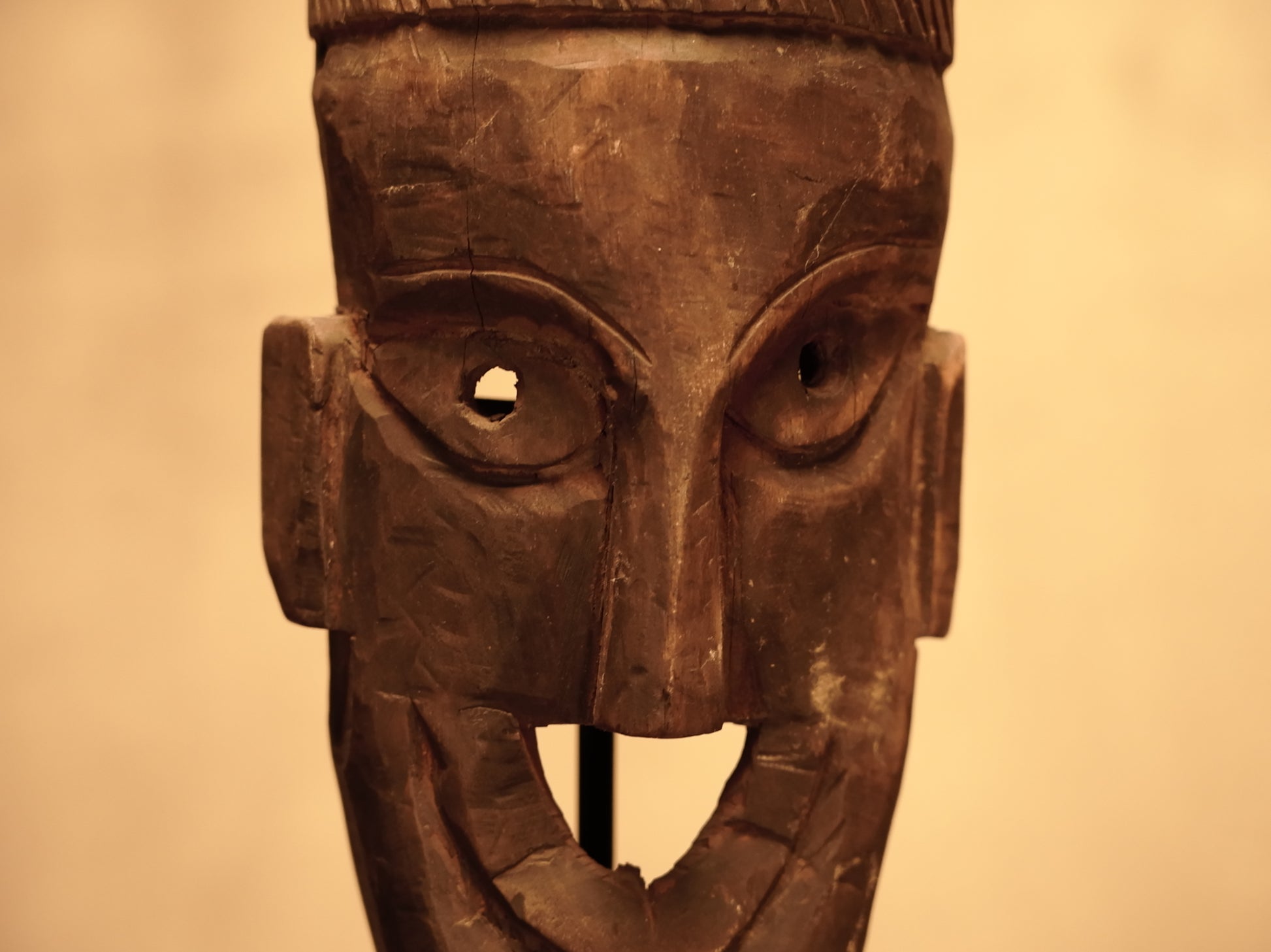 Handgeschnitzte Holzmaske auf handwerkliche Weise.