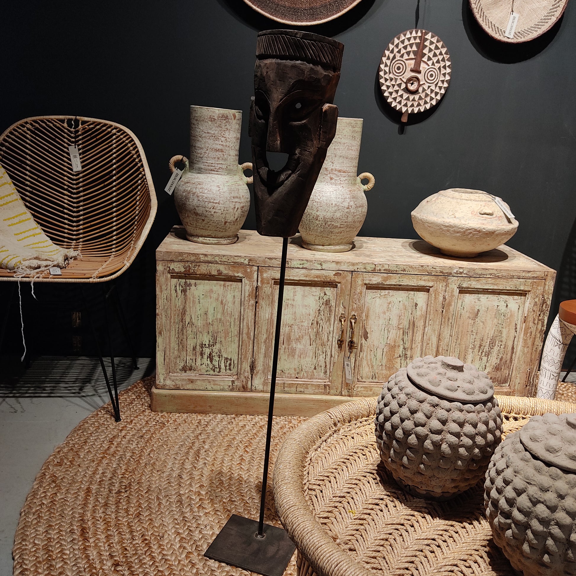 Diese atemberaubende handgeschnitzte Holzmaske ist ein Meisterwerk traditioneller Handwerkskunst. Mit einem Design, das an alte Kulturen erinnert, wurde jedes Detail mit großer Geschicklichkeit geformt und spiegelt die tiefe Symbolik und Spiritualität der Stammesmasken wider. Seine dunkelbraune Oberfläche unterstreicht die natürliche Textur des Holzes und macht es zu einem einzigartigen Stück mit Charakter. Ideal für alle, die ihrem Zuhause einen Hauch von Authentizität und Geheimnis verleihen möchten, wird diese Maske zu einem Blickfang, der nicht unbemerkt bleibt.
