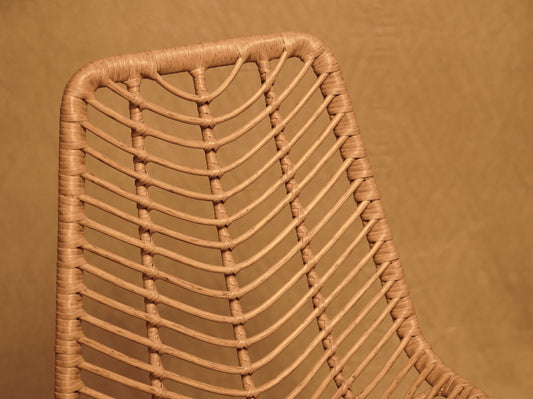 Handcrafted chair made of wood and wicker in rustic bohemian style