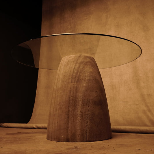 Mesa de madera oscura con cristal estilo rústico 110x110