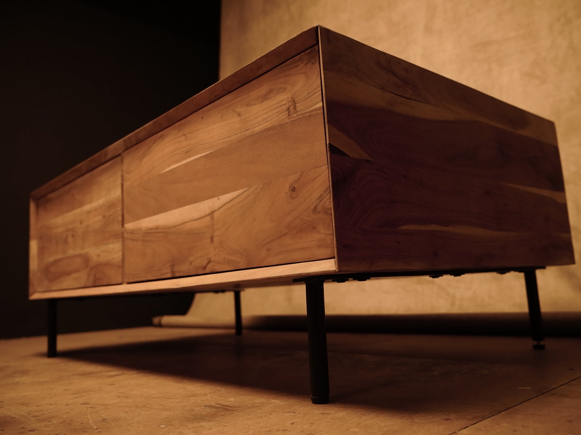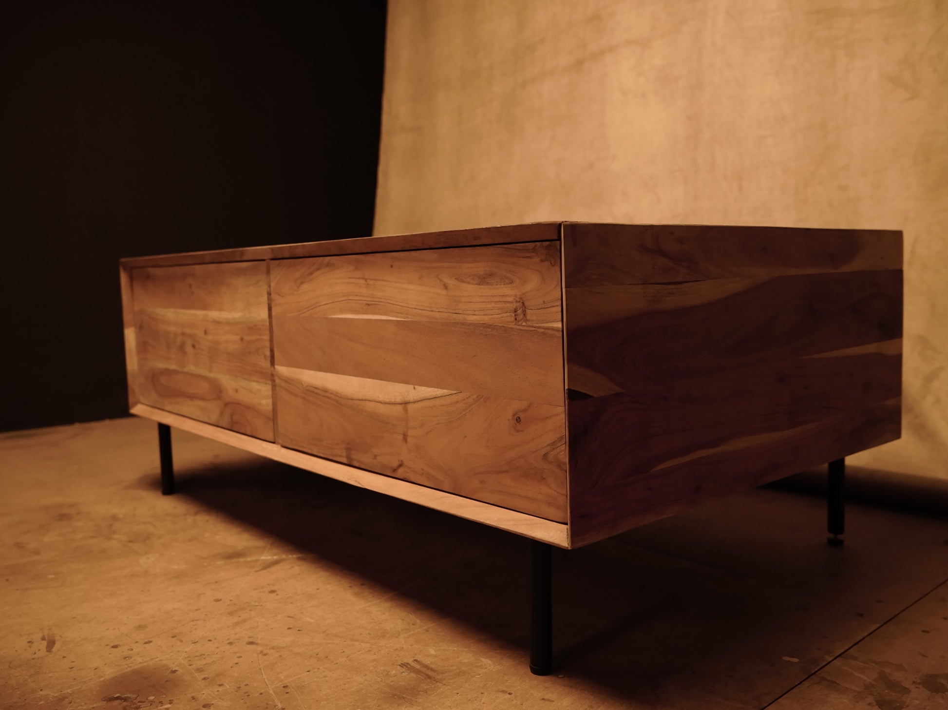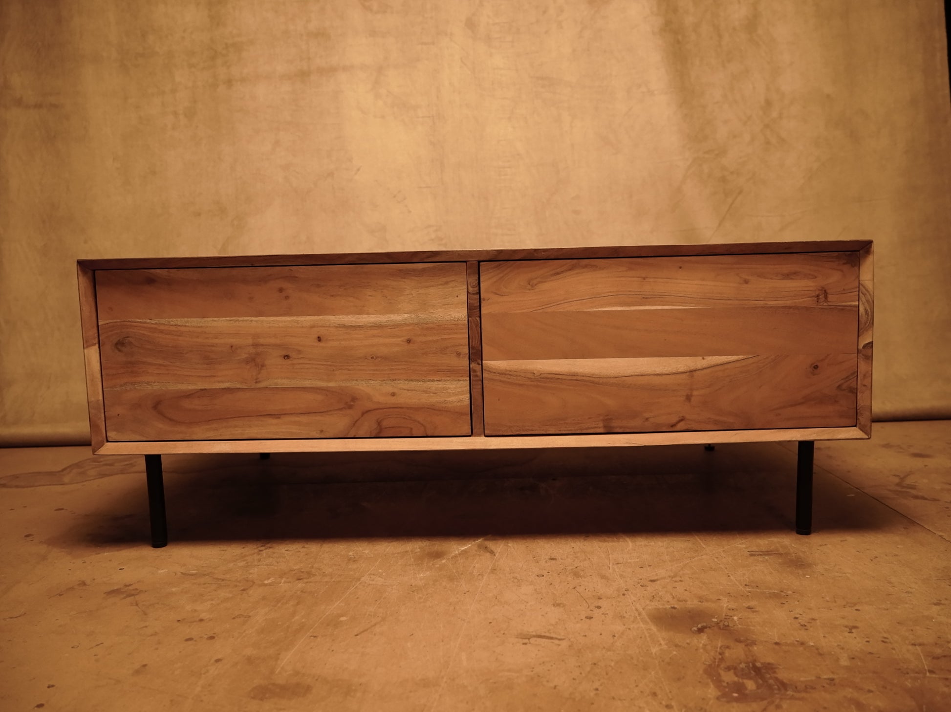 This elegant TV table, made of premium acacia wood, is a piece that combines functionality and natural beauty. The hand-sanded finish highlights the unique grains of the wood, giving it a warm and sophisticated look that fits perfectly with contemporary and rustic decor styles. Originating in India, this table is not only a practical piece of furniture, but also a piece of craftsmanship that brings a touch of authenticity and quality to any living room.