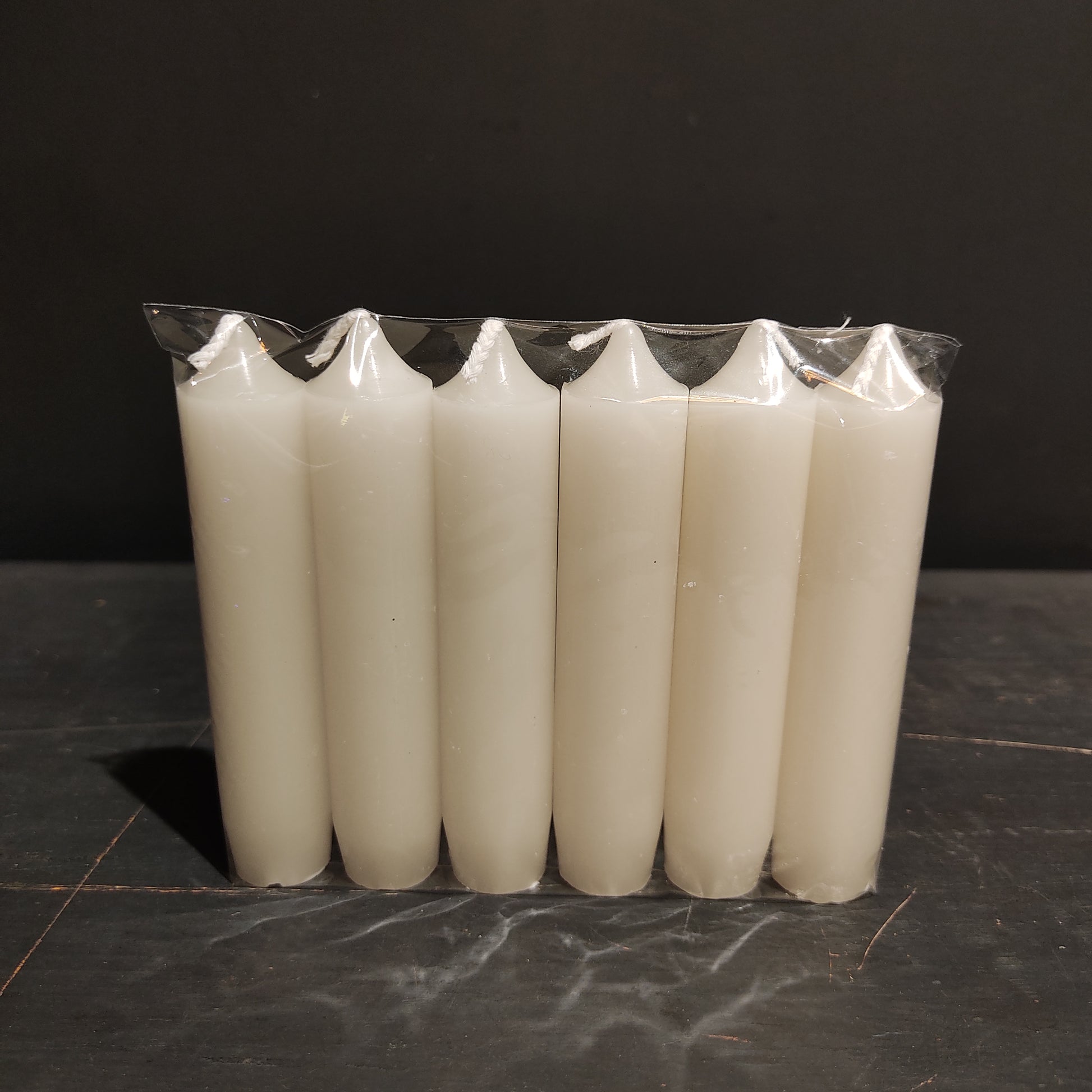Measurements: dia2.20-H11.00cm. Set of 6 cream wax candles.