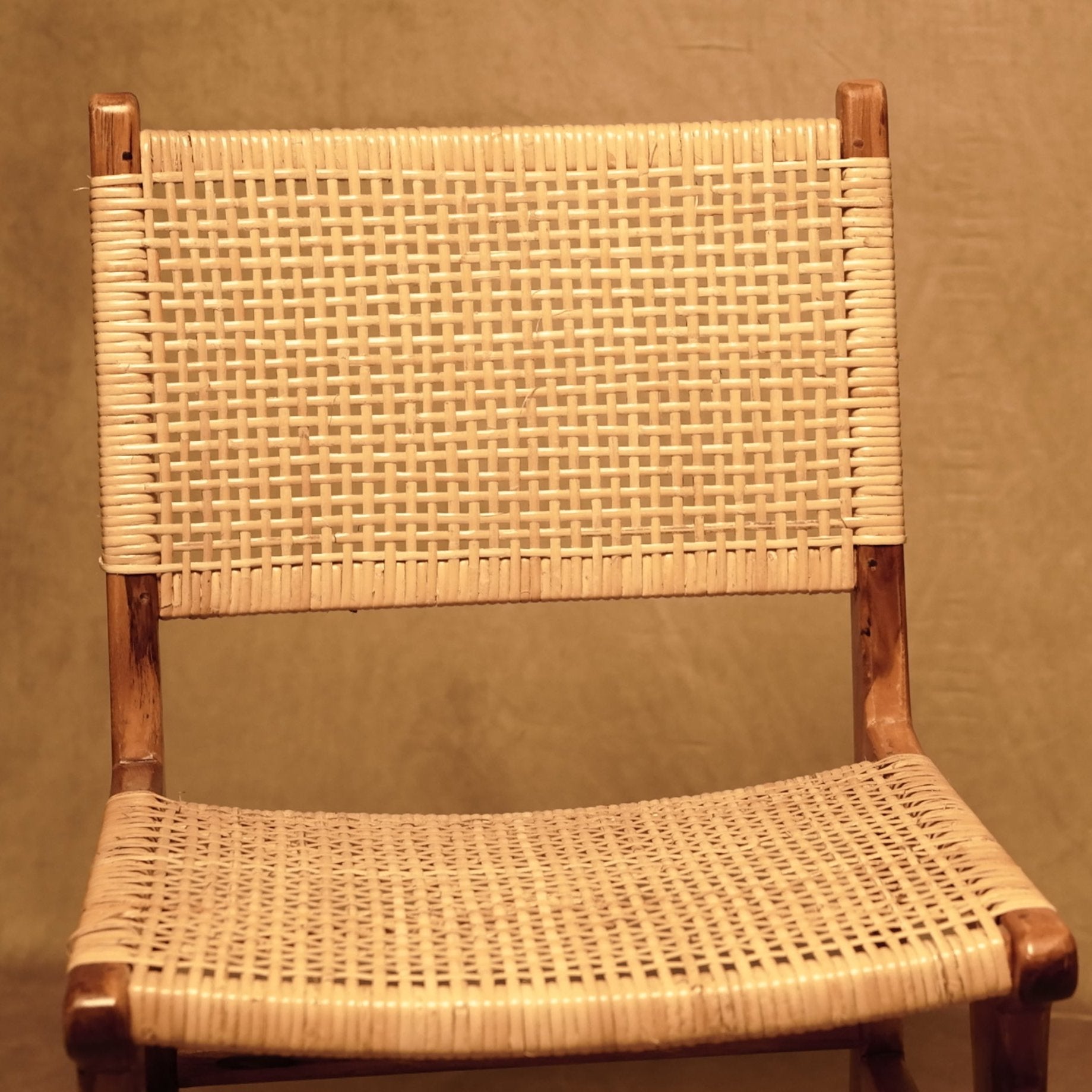Silla artesanal de madera y mimbre estilo bohemio rústico